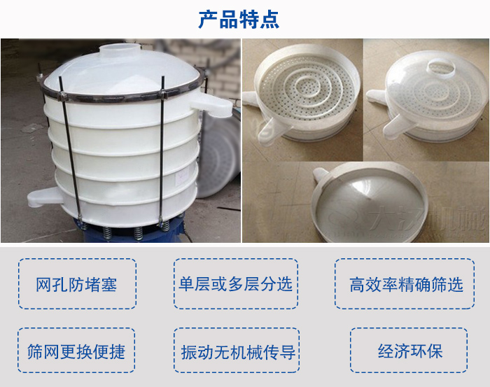 所有進(jìn)機(jī)物料自動(dòng)排放,機(jī)內(nèi)無(wú)存料。同等篩面塑料振動(dòng)篩比其他類型篩機(jī)有更大容量。