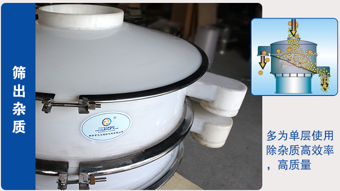 每臺(tái)塑料振動(dòng)篩可選一至三層篩網(wǎng),能同時(shí)進(jìn)行二到四個(gè)等級(jí)的分選或過(guò)濾。