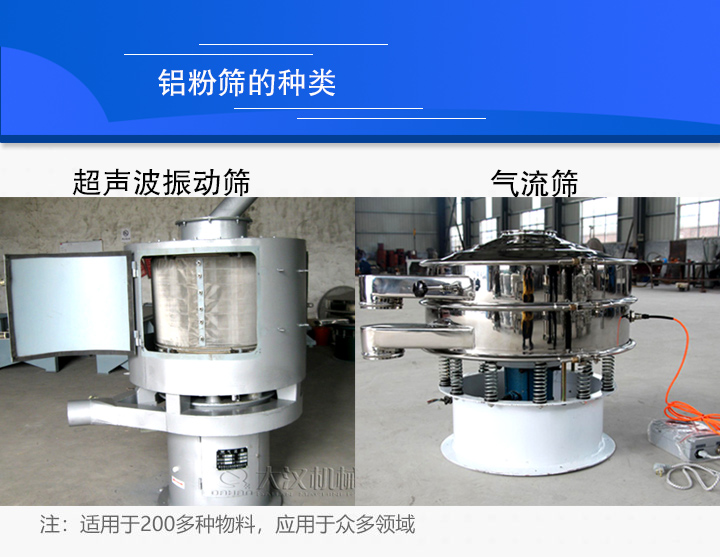 鋁粉由于是一種粉狀物料,在篩分時容易出現卡網或者堵網的現象,并且其粉末的特性容易出現粉塵的污染,所以通常會采用超聲波振動篩或者氣流篩這樣的篩分設備,不僅能夠解決網孔堵網的問題,提升產品的篩分質量,還能夠避免污染,保證工人的安全。但是這兩種振動篩價格是有很大差異的,超聲波振動篩是傳統(tǒng)旋振篩的基礎上安裝了超聲波篩分系統(tǒng),價格相對較低;而氣流篩則是采用了全新的動能方式,利用的空氣作載體,動能做功的原理,價格相對較高。