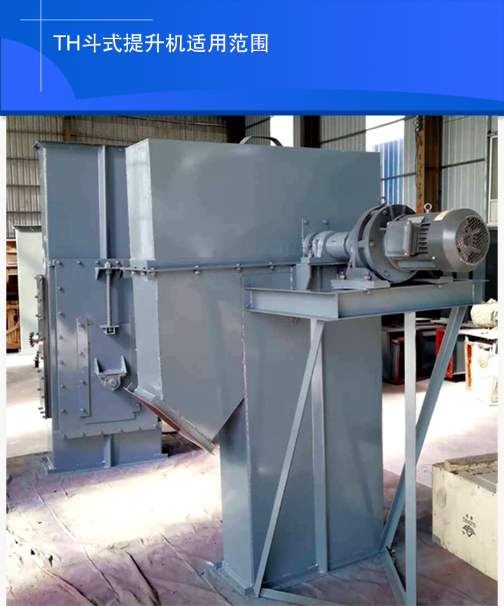 1.TH斗式提升機輸送量大、運行平穩可靠、使用壽命長、設計符合JB3926-85《垂直斗式提升機》標準。