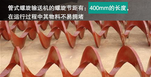 (1)管式螺旋輸送機的螺旋節(jié)距有:400mm的長度,在運行過程中其物料不易擁堵。