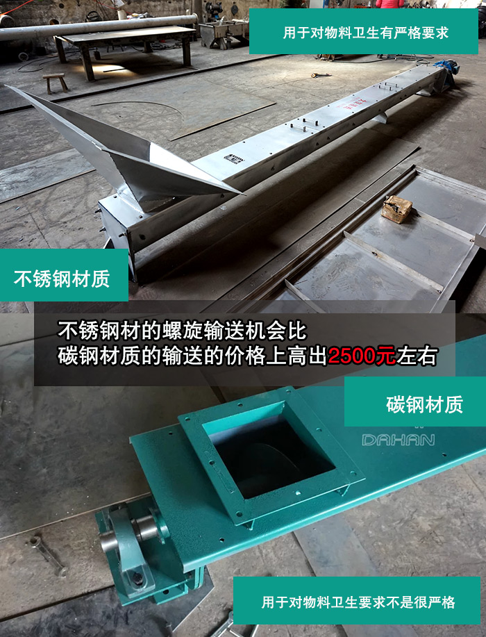 總上所述不銹鋼材的螺旋輸送機會比碳鋼材質(zhì)的輸送的價格上高出2500元左右。